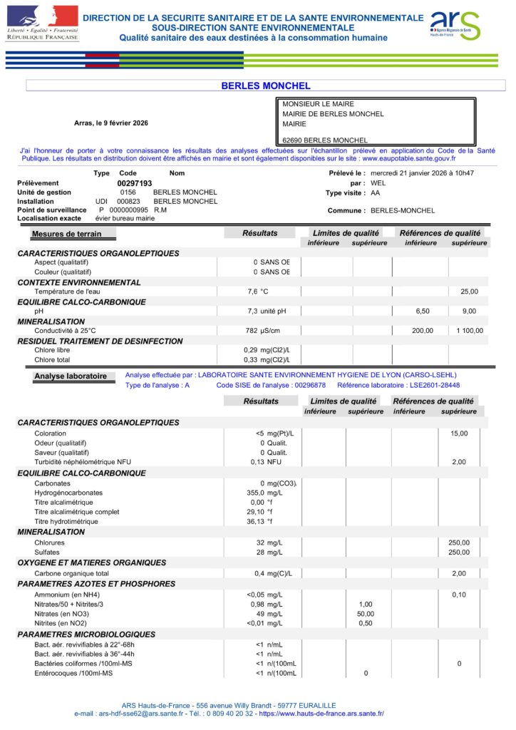 Analyse d’un échantillon d’eau prélevé le 09/02/2025.